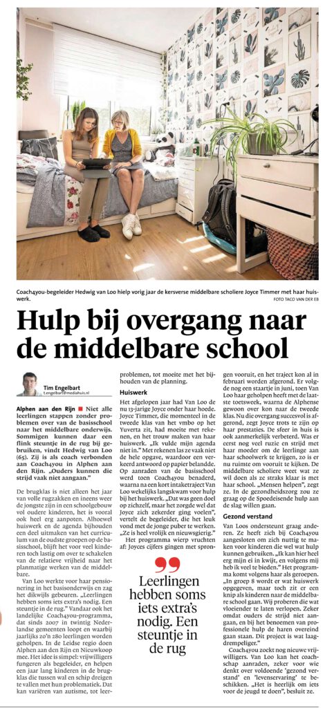 In het Leids Dagblad van 6 september 2022 stond een bijdrage over de Gilde activiteit “Coach4you”: